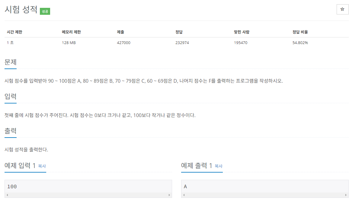 A, B, C, D, F 중 하나를 출력하기만 하면 성공이다.