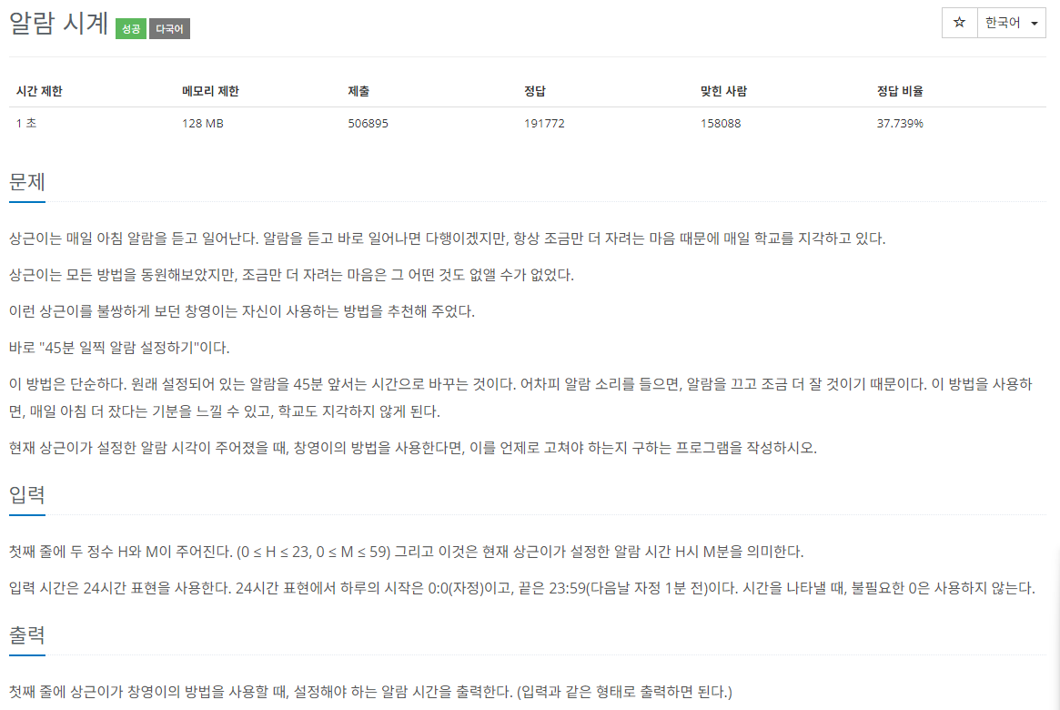 분이 45분보다 크면 그냥 빼주기면 해도 되기에 m -= 45;를 써주었다.