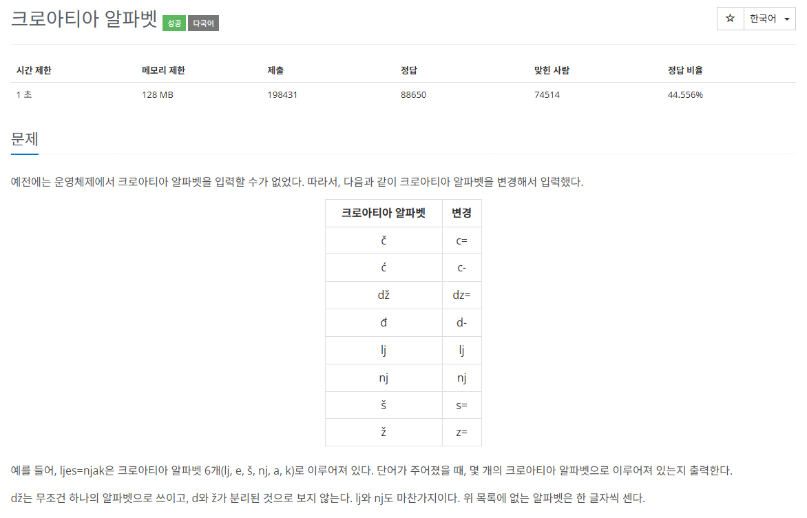 이번 문제는 문자열로 표현된 크로아티아 알파벳을 구분하여 몇 글자인지 세는 문제이다.